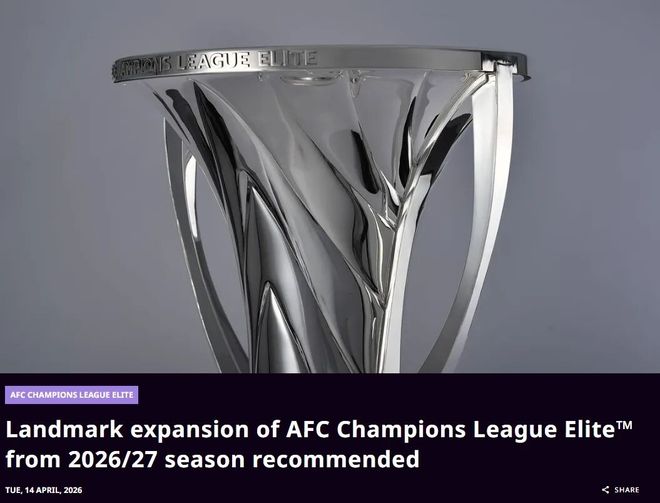 亚足联:拟自2026-27赛季起对亚冠精英联赛扩军,24队增至32队