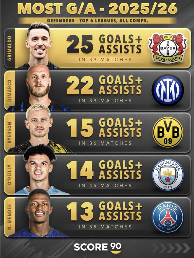 三年制造74球!勒沃库森后卫格里马尔多脚法完爆了欧洲大部分中场