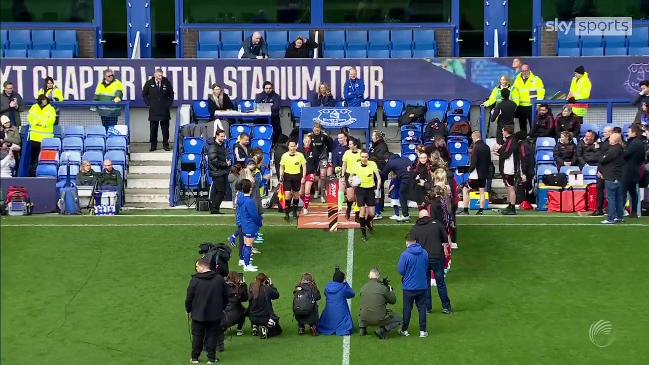 埃弗顿女足vs利物浦女足赛前双方球员为5名日本女足国脚列队